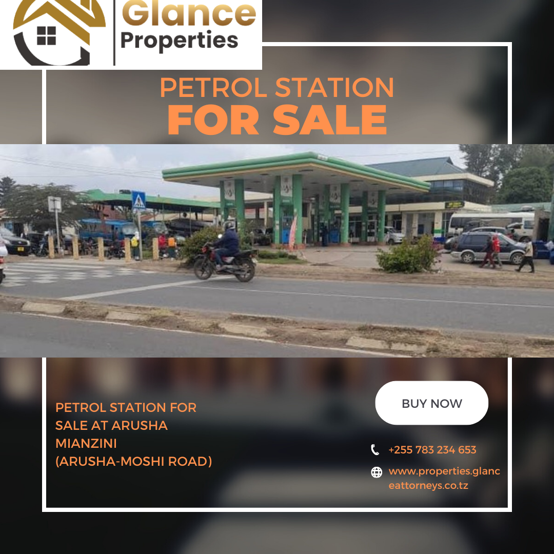 Petrol station for sale at Arusha Mianzini (Arusha-Moshi Road) Serious buyers, kindly contact us +255 783 234 653 Visit our website: www.properties.glanceattorneys.co.tz