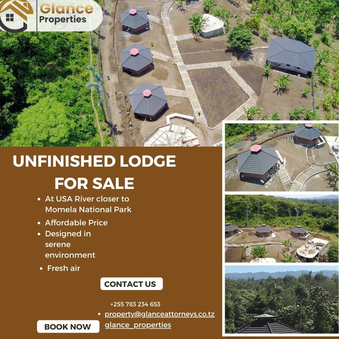 Unfinished lodge for sale located at USA river close to Momela National park, the lodge Is well designed in serene environment, fresh air and very quite environment.